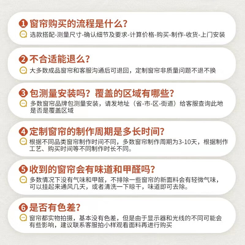 4、美美的窗帘,终于赶在搬家前收到啦!布料的垂坠性很好,料子摸着也很舒服,厚度也可以。纱帘选的清欢纱的确是透光不透人。客服态度都好好,大家不了解的一定先问清楚,都会一一解答。安装师傅技术好,测量和安装都很仔细和准确,全都弄得巴巴适适的!