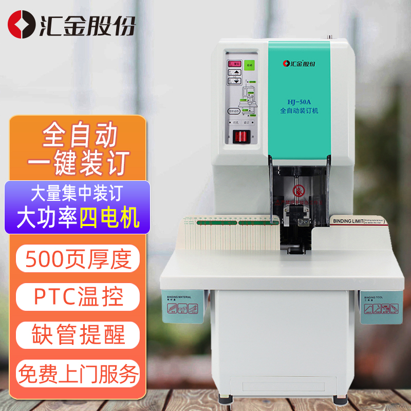 说实话这款汇金机电HJ-50A还不错的,全自动装订机,装订非常方便,一键打孔装订,不需要再手动装订,省时省事快速,胶管装订非常之牢固,封口美观,不会脱落,带激光校准坐标,装订位置准确无误。