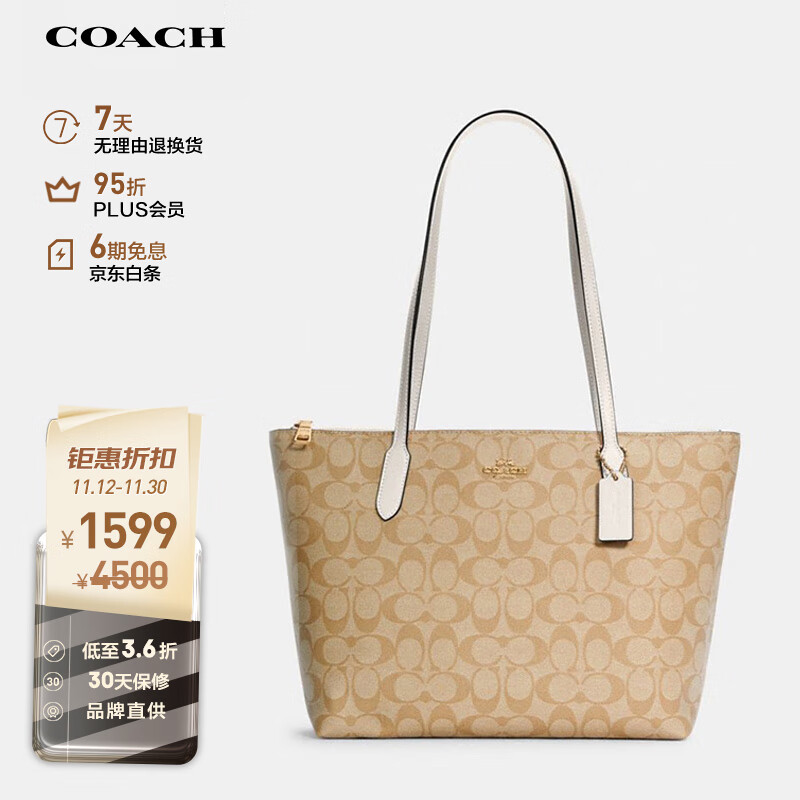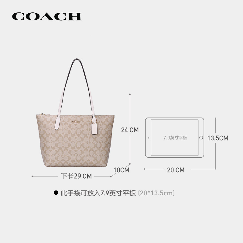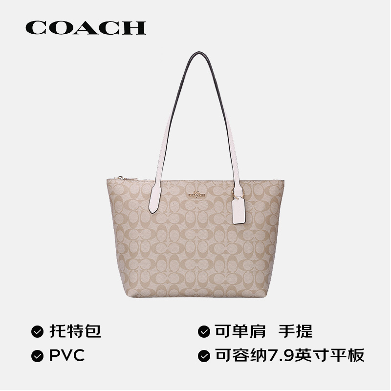 蔻驰(COACH)女士大号单肩手提包托特包卡其色/白色4455IMDQC价格:1599.00元!