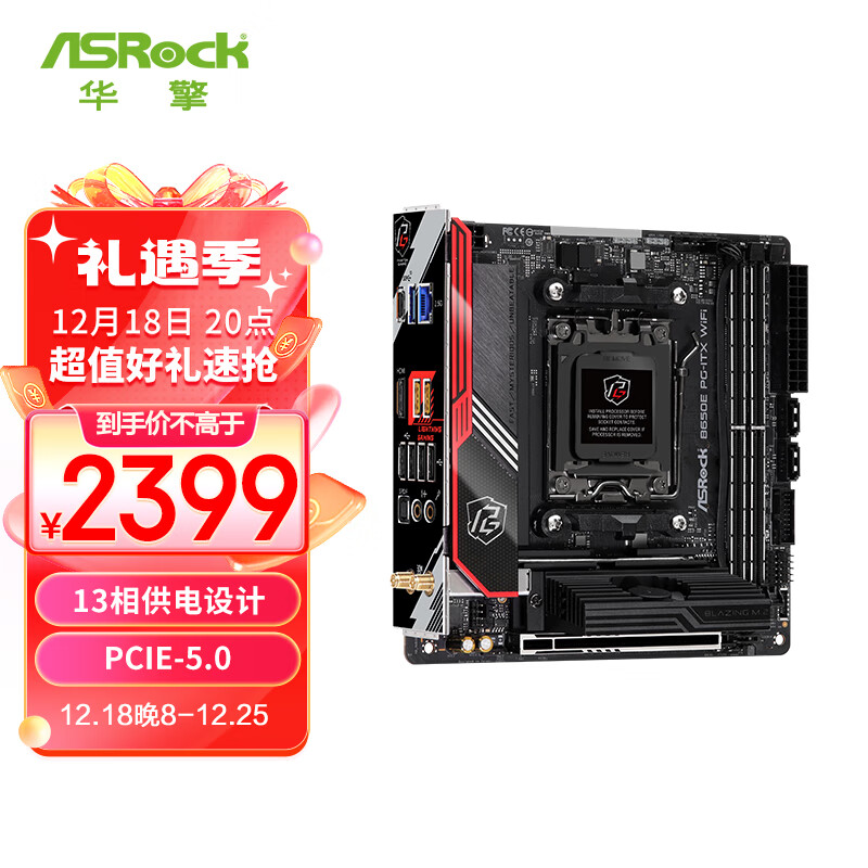华擎(ASRock)B650E PG-ITX WiFi6 主板 DDR5 支持 AMD7950X/7900X/7700X(AMD B650E/Socket AM5) 价格:2499.00元!