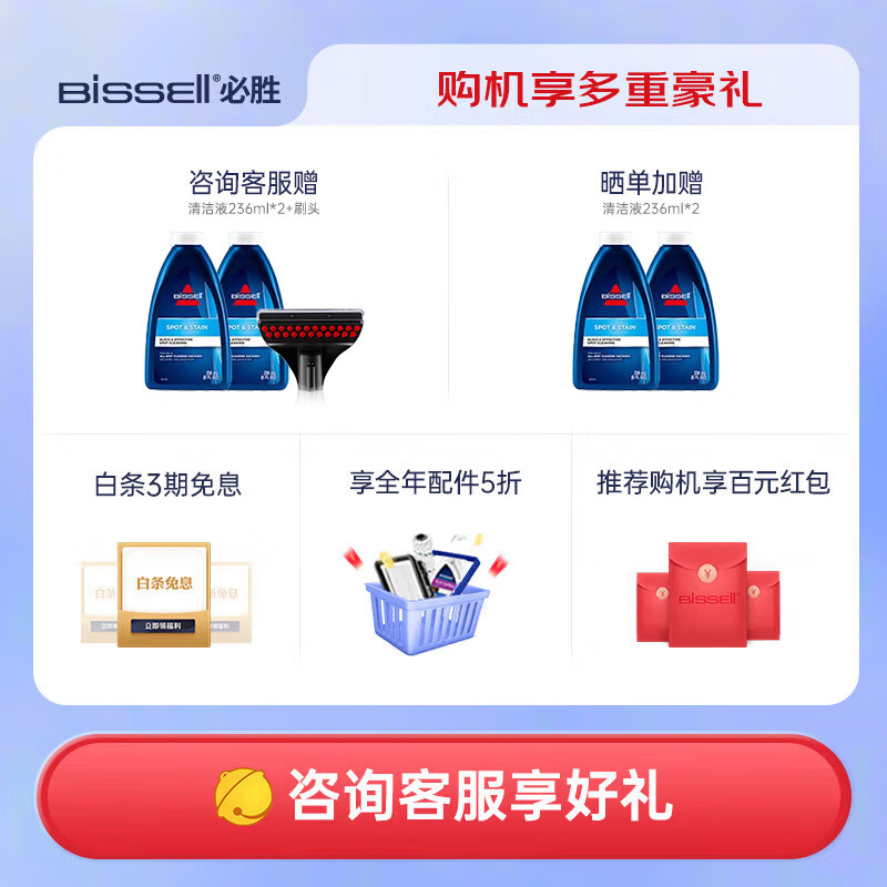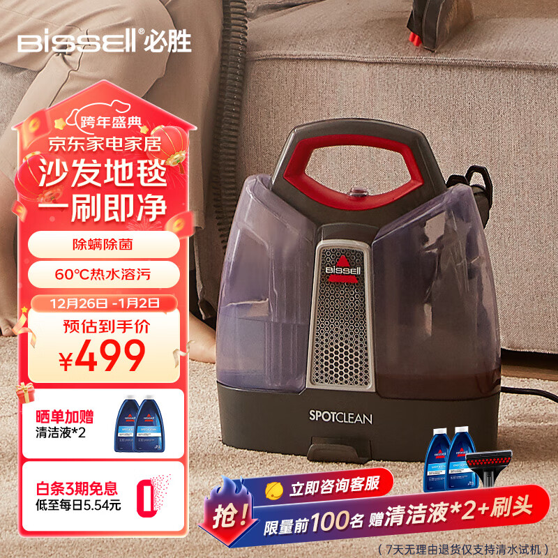 必胜(BISSELL)多功能布艺清洗机喷抽吸一体家用除螨洗地毯清洗机地毯沙发床垫窗帘汽车清洁神器 3698Z价格:499.00元!