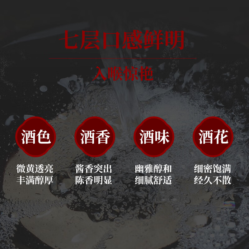 1、没有漏酒现象,口感浓厚,回味悠长,京东自营值得信赖,不辣喉不上头。价格合适,值得回购。酱香突出,没有乱七八糟的味道,入口后回甘够快,,属于一款很的酱香酒
