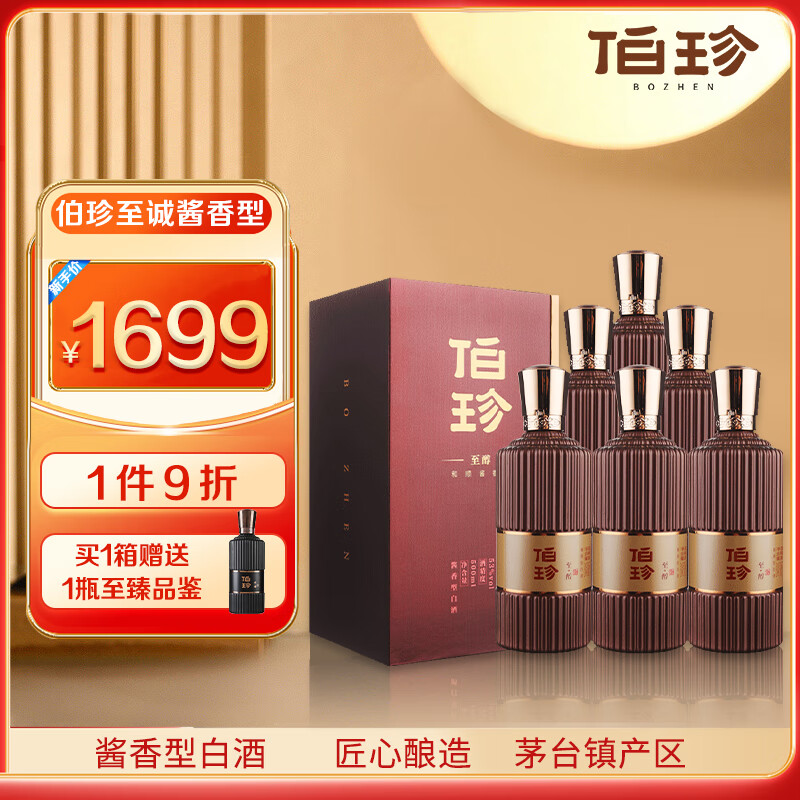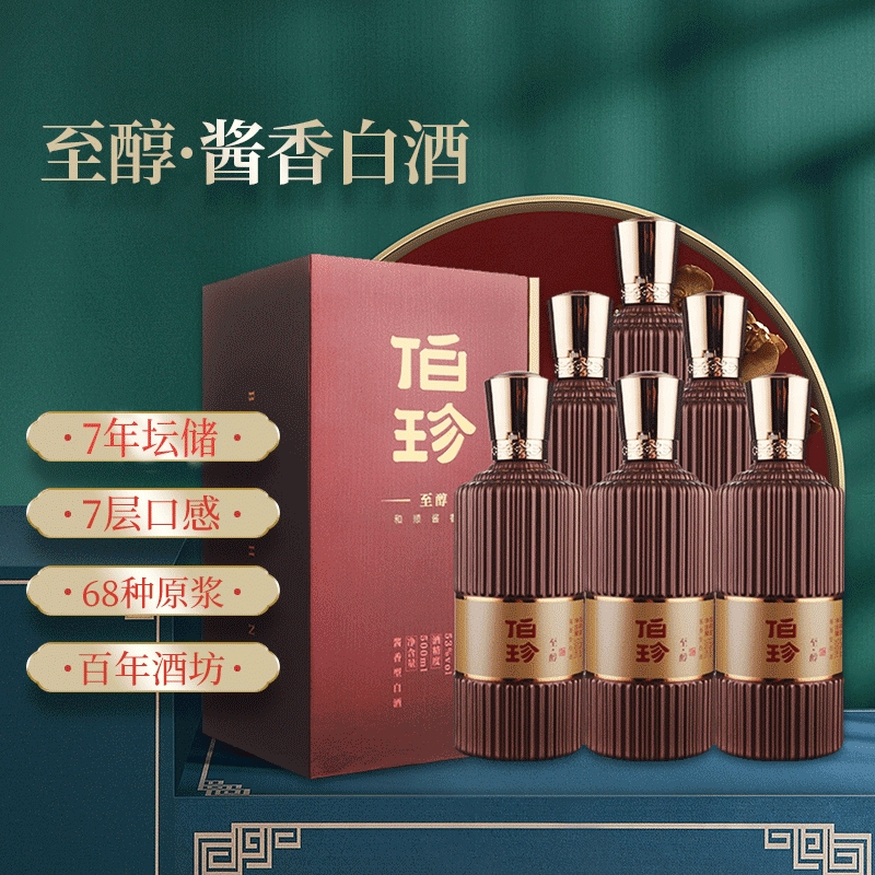 伯珍至醇酱香型白酒53度500ml*6整箱装纯粮固态 婚宴宴请 茅台镇产区价格:1889.00元!