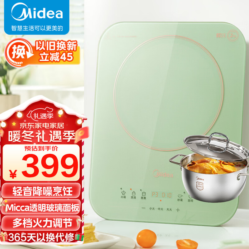 美的(Midea)电磁炉 家用大功率 2200W 恒匀火加热 持续小火低音超薄电磁炉灶定时 C22-MICCA711 升级欧式汤锅价格:439.00元!