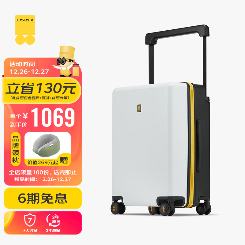 地平线8号(LEVEL8)行李箱男女密码拉杆箱大旅行家20英寸登机宽拉杆PC旅行箱黑白撞色价格:1199.00元!