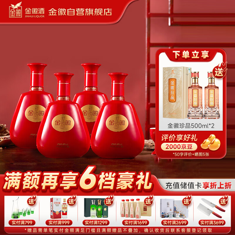 金徽 18年 浓香型白酒 46度 500ml*4瓶 整箱装 婚宴价格:2068.00元!