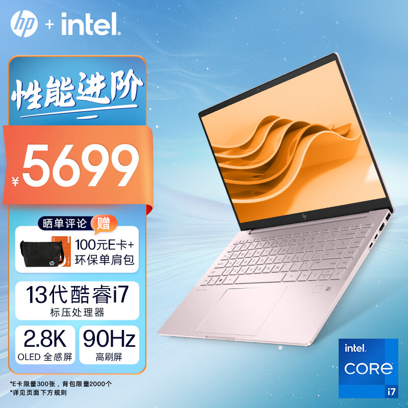 惠普HP 星Book Pro 14英寸轻薄笔记本电脑(13代酷睿i7-13700H标压 16G 1TB 2.8K 90Hz OLED全感屏 硬件护眼)粉价格:5699.00元!