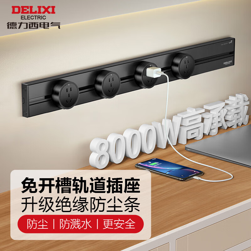 德力西(DELIXI)轨道插座 可移动插座壁挂式滑轨插座80厘米+4个五孔插座 黑色价格:569.00元!