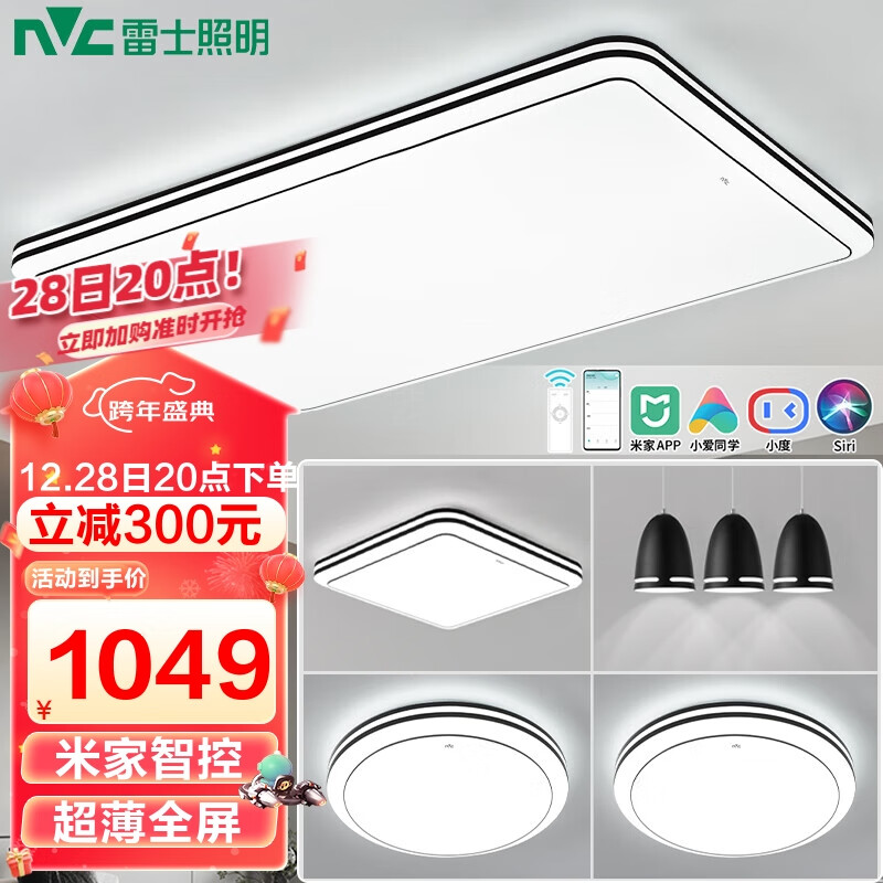 雷士(NVC)LED吸顶灯 智控雅黑客厅卧室双层发光灯饰现代简约超薄灯具套餐价格:1349.00元!