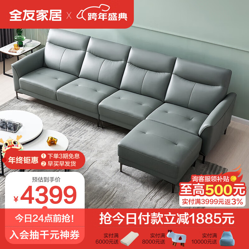 全友家居 真皮沙发 现代简约大小户型头层黄牛皮沙发客厅家具102710B价格:6284.00元!