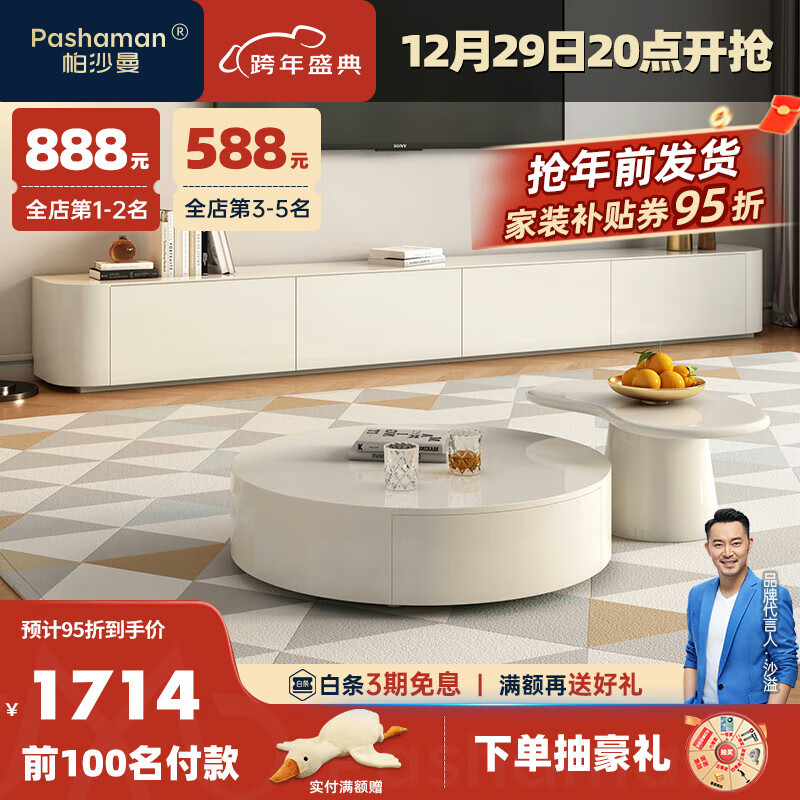 帕沙曼(pashaman)落地电视柜茶几组合简约奶油风客厅 2.0米电视柜 Z0046价格:2347.00元!