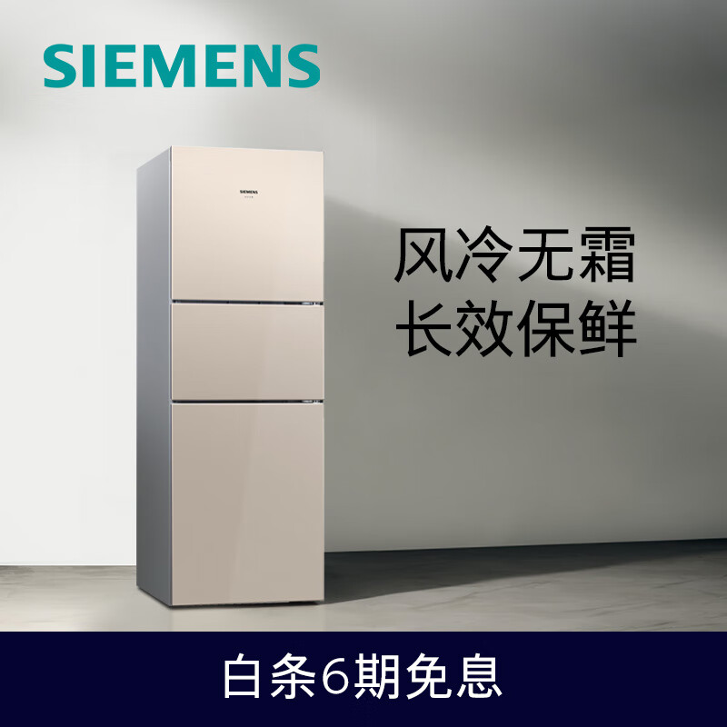 西门子(SIEMENS) 271升风冷三门大容量家用冰箱双效过滤控温浅金色以旧换新BCD-271W(KG28NV230C)价格:2248.00元!