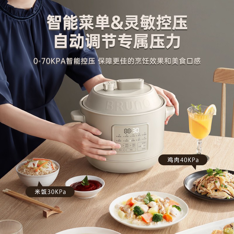 说实话这款BRUNOBZK-YLG01的朋友有点多,这回就给大家介绍下,这款才出不久,特别的受欢迎,颜值很高女朋友很喜欢,闷饭煮粥很好用,炖骨头容量有点小建议再多加大容量版本