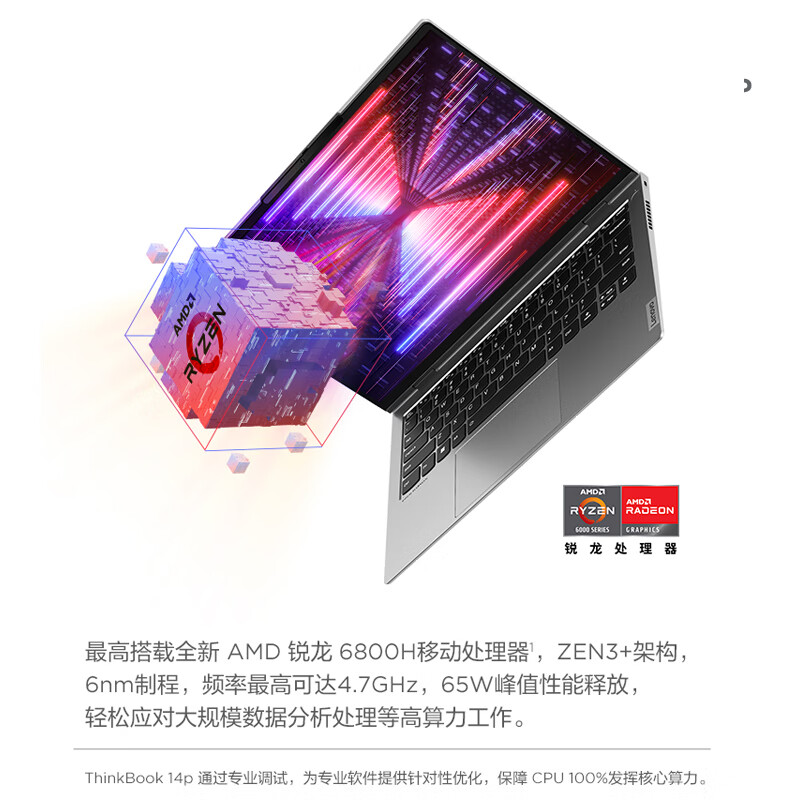 ThinkPad 联想ThinkBook 14p锐龙版 高性能设计办公笔记本电脑 2023新品 14英寸R7-6800H 16G 512G 预装office价格:3999.00元!