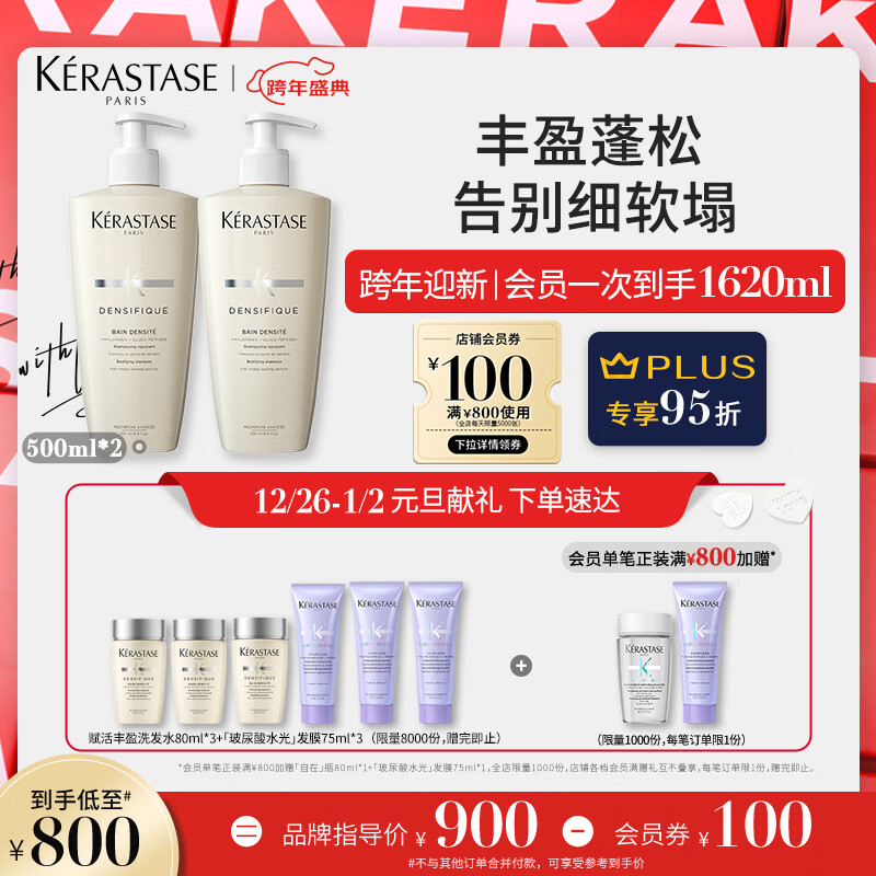 卡诗白金赋活洗发水套装500ml*2无硅油丰盈蓬松改善细软扁塌价格:900.00元!
