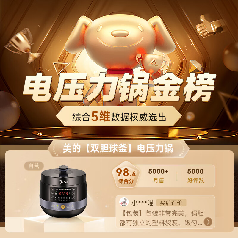 美的(Midea)电锅高压锅电饭煲一键排气家用电高压锅电饭锅双内胆球釜多功能预约定时MY-YL50Easy202 球釜双胆 3-8人价格:519.00元!