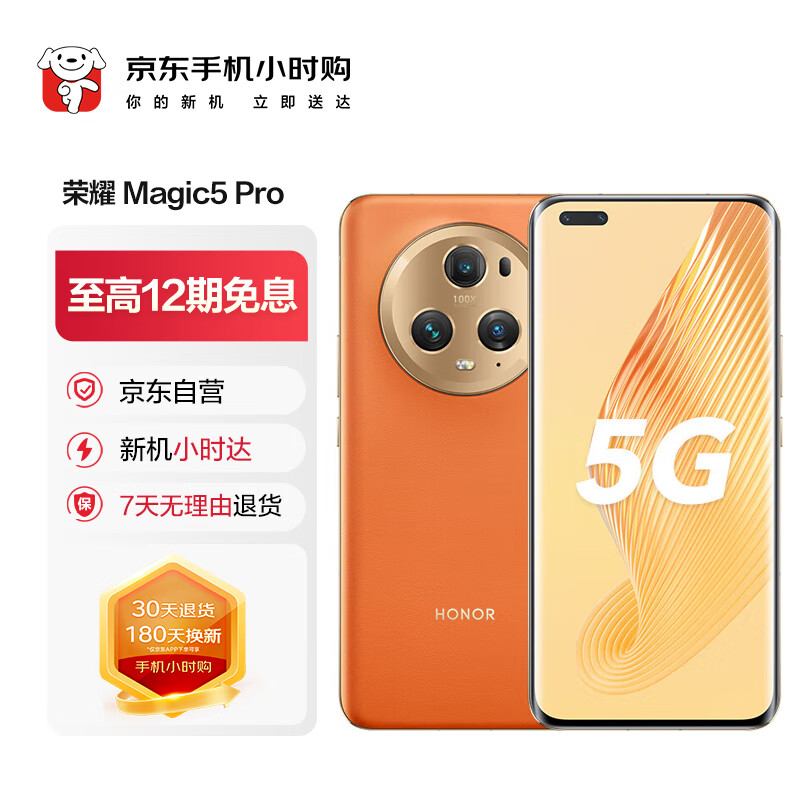 荣耀Magic5 Pro 12GB+256GB 燃橙色【小时购】价格:5299.00元!