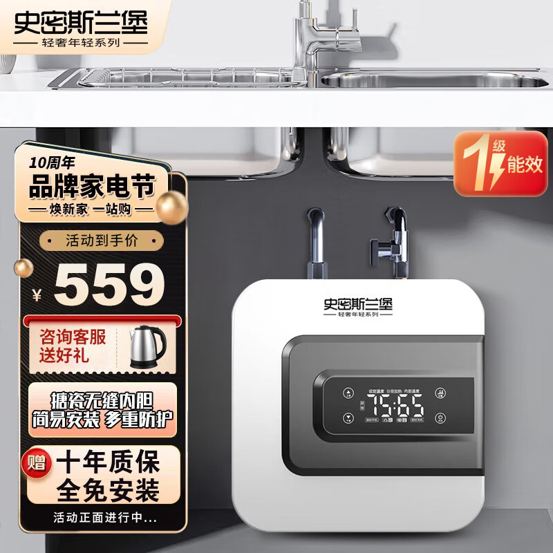 史密斯兰堡电热水器储水式小厨宝10升一级能效家用1600W小型台下式厨宝宝上出水卫生间阳台暖水宝 BLJ-G10价格:559.00元!