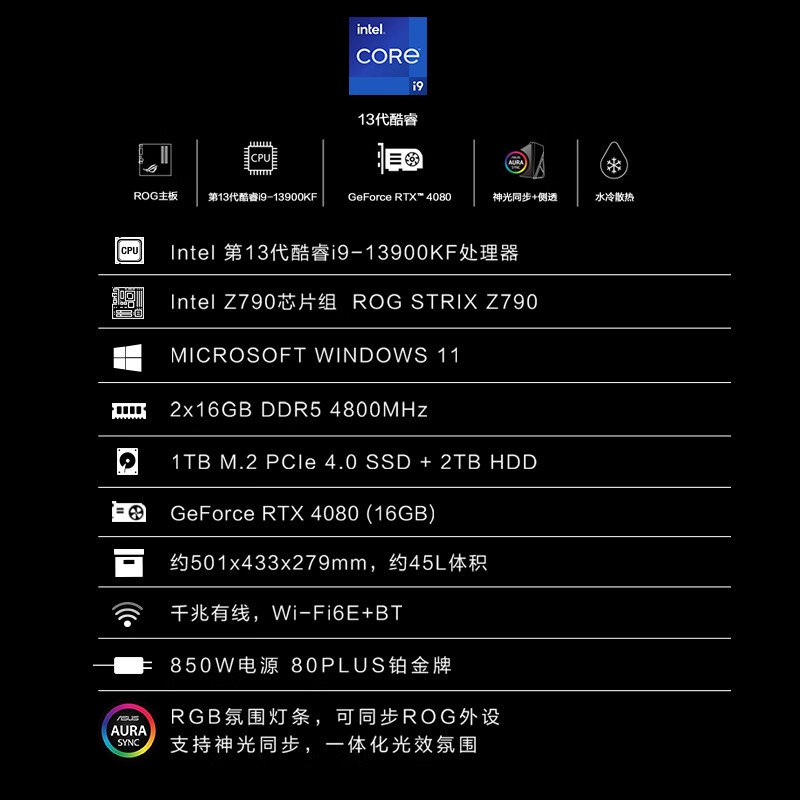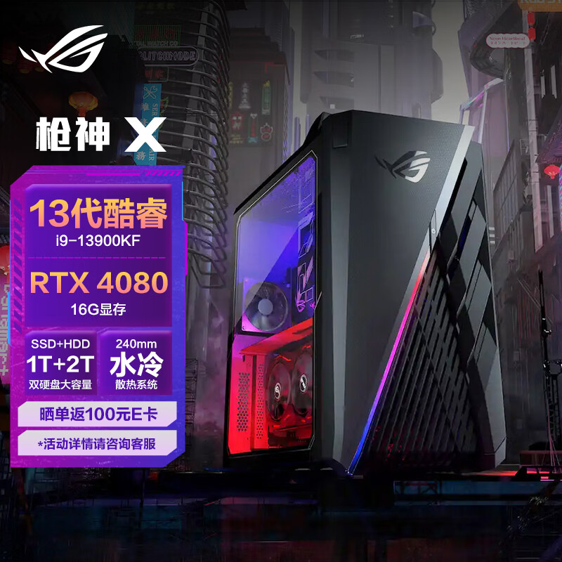 ROG枪神X 水冷旗舰电竞游戏台式机电脑主机设计师电脑(13代i9-13900KF 32G 1TB SSD+2TB HDD RTX4080 16G)价格:21999.00元!