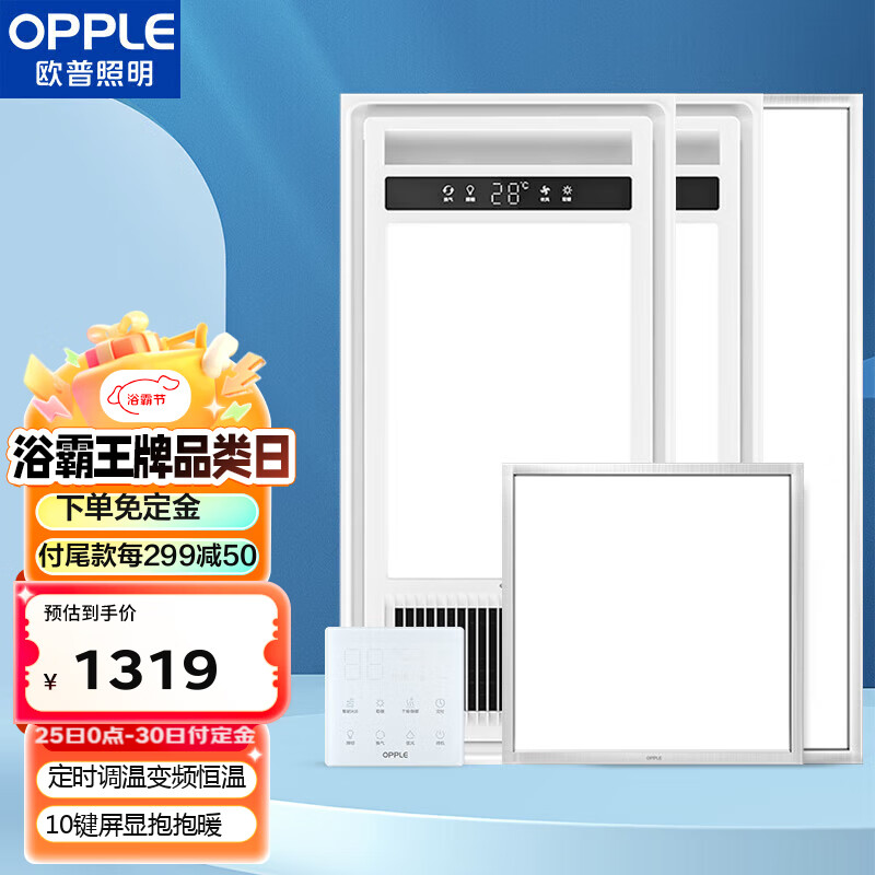 欧普(OPPLE)风暖浴霸浴室卫生间数显两线轻触变频恒温集成吊顶浴霸F185-Y套餐价格:1619.00元!