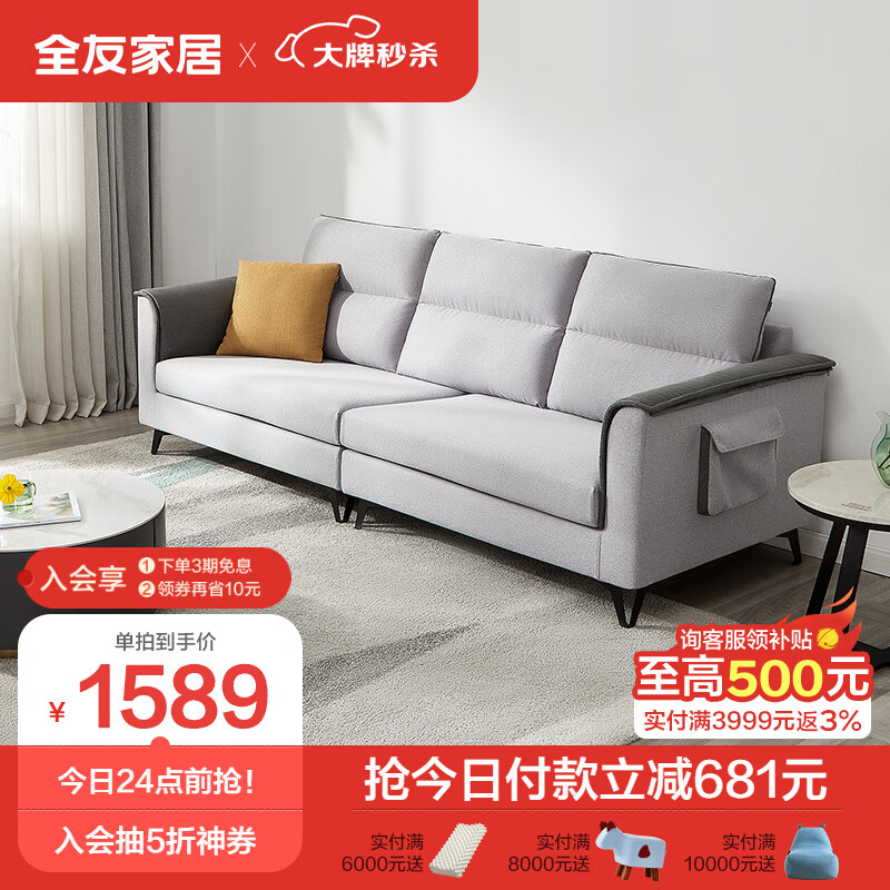 全友家居 沙发 现在简约布艺沙发客厅小户型双人沙发组合102567A-3价格:2270.00元!