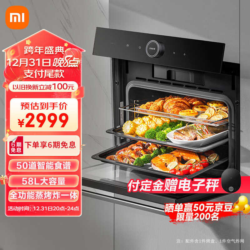 米家小米蒸烤箱一体机 蒸烤空气炸三合一 家用58L大容量嵌入式多功能电蒸箱电烤箱 智能食谱辅助MQR01M价格:2999.00元!