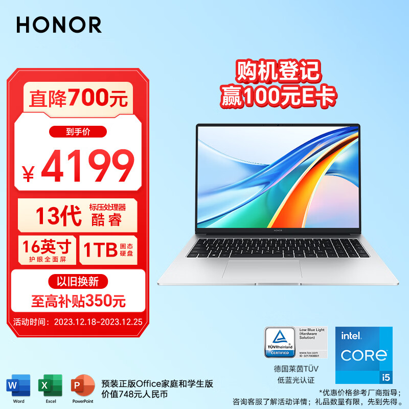 荣耀笔记本电脑MagicBook X 16 Pro 2023 13代酷睿标压i5-13500H 16+1T 16吋高性能轻薄本 大电池 手机互联价格:4199.00元!