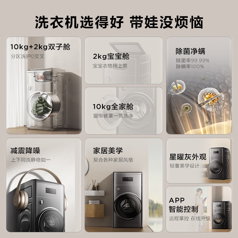 TCL 12KG双子舱T300复式分区洗衣机母婴分类洗除菌 APP智控 双筒全自动滚筒洗衣机G120T300-BYW价格:2999.00元!