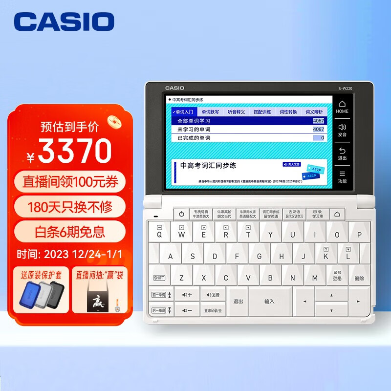 卡西欧(CASIO)电子辞典 E-W220WE 英汉辞典、留学、雪瓷白价格:3390.00元!