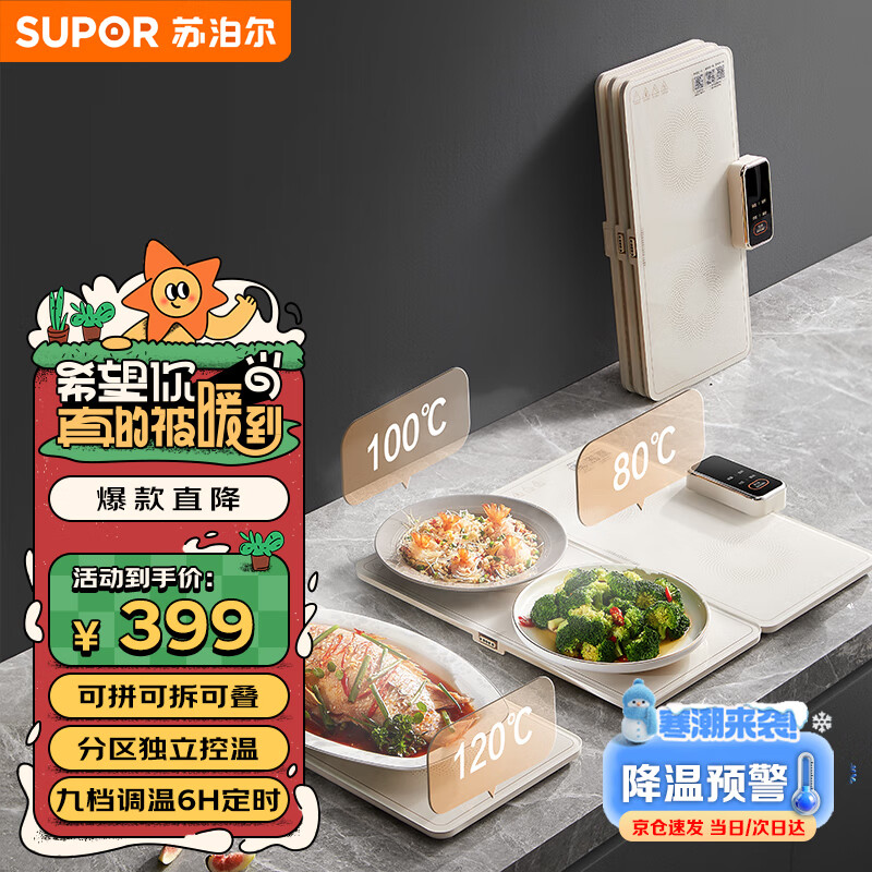 苏泊尔(SUPOR)折叠暖菜板 饭菜保温板热菜板 加热桌垫菜板 9档调温分区控温热菜神器(方形) BF6040P809D价格:399.00元!
