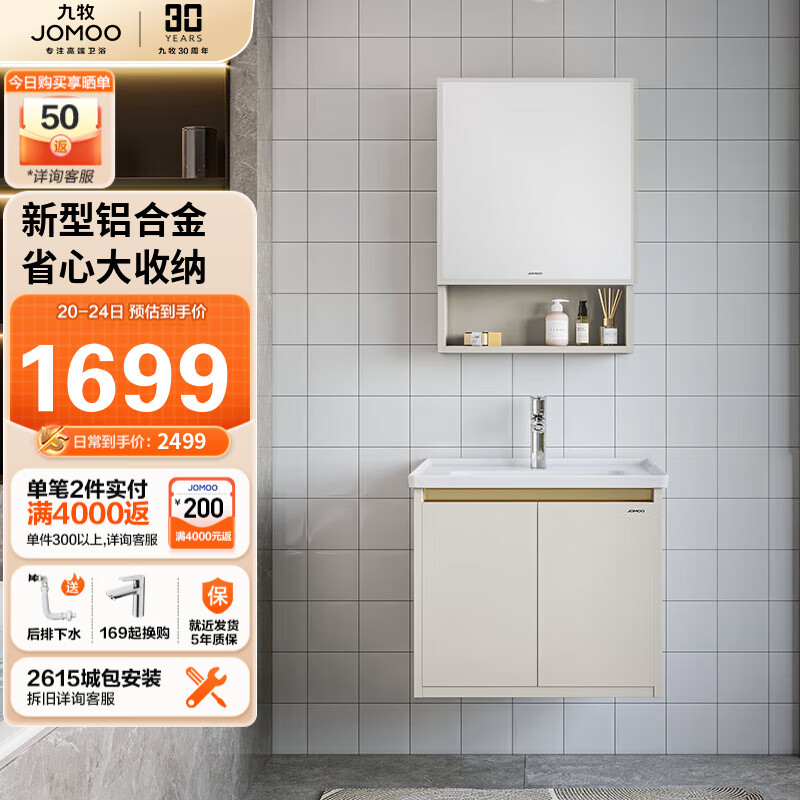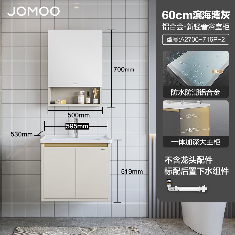九牧(JOMOO)浴室柜 陶瓷一体盆铝合金悬挂抗菌组合柜海湾灰60cm A2706-716P-2价格:2099.00元!
