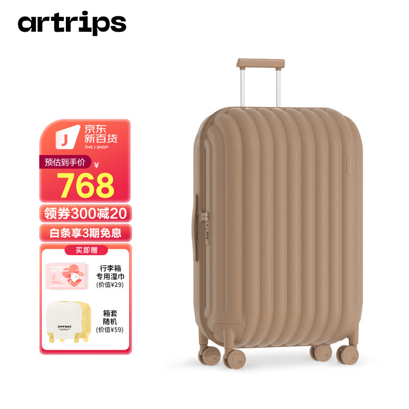artrips行李箱男女拉杆箱28英寸大容量旅行箱面包款万向轮皮箱子 可可棕价格:878.00元!
