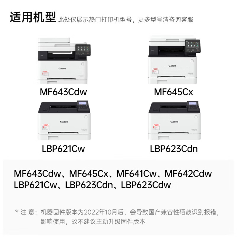 4、精挑细选了天威的这款CRG-054硒鼓四色套装,品质很不错。这套硒鼓适用于佳能LBP621CW、佳能LBP623Cw等几种打印机型号。打印效果很好,色彩很纯正。