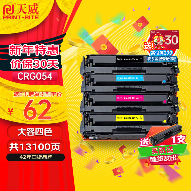 天威CRG054硒鼓四色套装大容量带芯片适用佳能LBP621Cw LBP623Cdw/Cdn MF641Cw MF642cdw MF643Cdw 墨粉盒价格:359.00元!