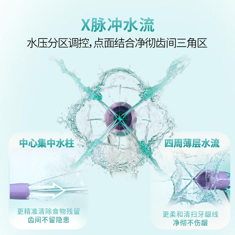 3、医生推荐买的这个,到家就试用了,清洁的很干净,能够深入牙缝,不存污垢,好几个档位可以调节,水流很有劲,自己设置各种档位,方便实用
