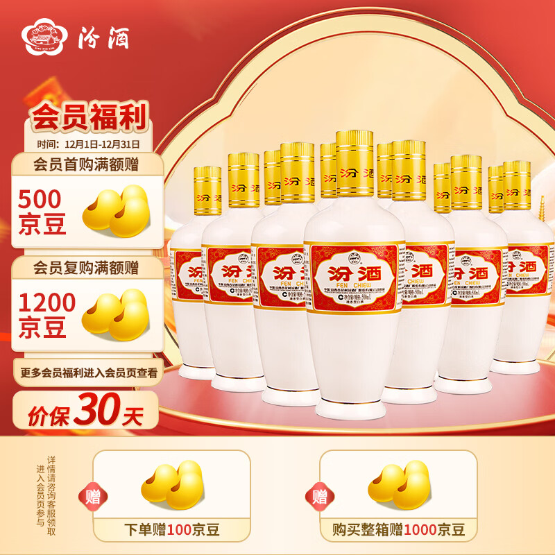 汾酒 出口白瓷 清香型白酒 53度 500ml*12瓶 整箱装价格:798.00元!