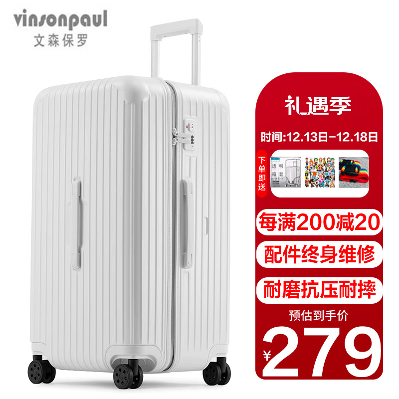 文森保罗行李箱男30英寸大容量拉杆箱出国托运耐磨抗摔旅行密码皮箱 白色价格:529.00元!