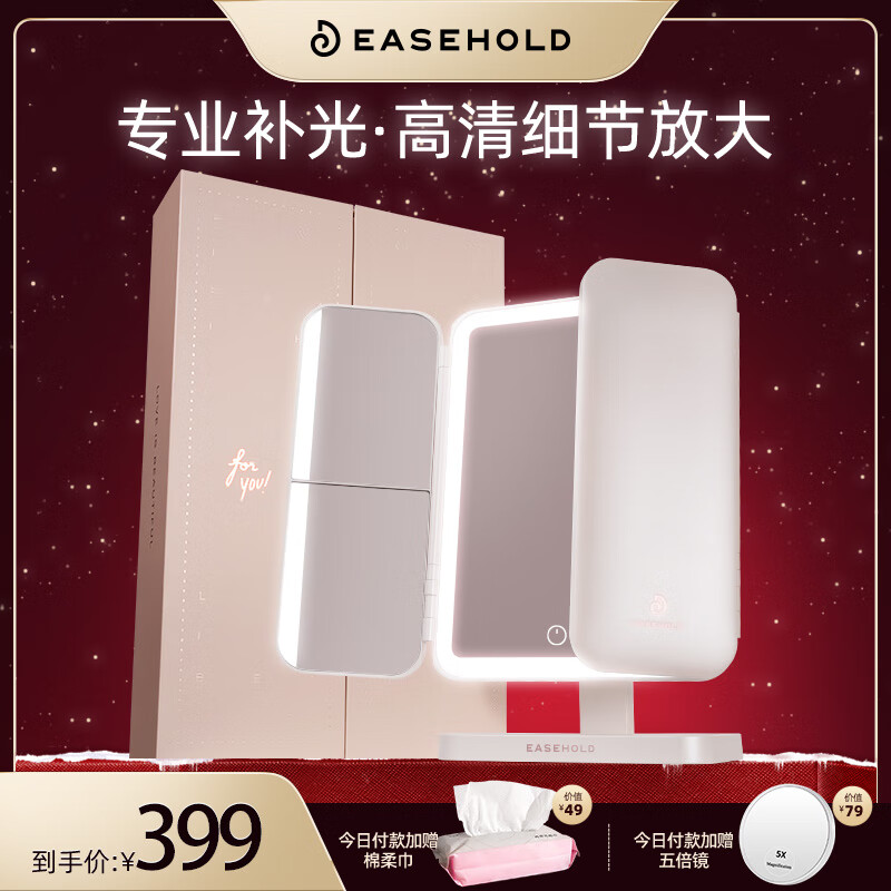 EASEHOLD化妆镜带灯led美妆梳妆贝壳镜子情人节520七夕礼物生日礼物送女友 两侧带灯【星品礼盒】白-5000mAh价格:429.00元!