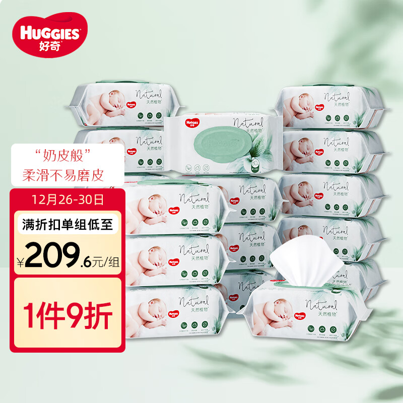好奇(Huggies)natural天然植物小森林湿巾80抽18包超厚倍柔铂金装增厚手口可用价格:262.00元!