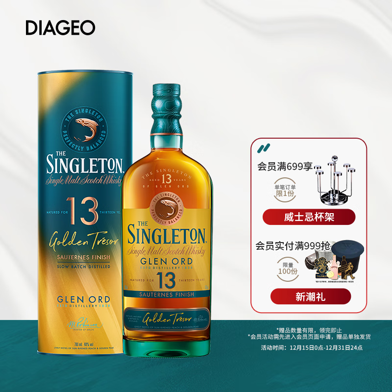 苏格登【节日送礼】 醇金13年苏玳 贵腐甜白桶 单一麦芽威士忌 700ml价格:420.00元!