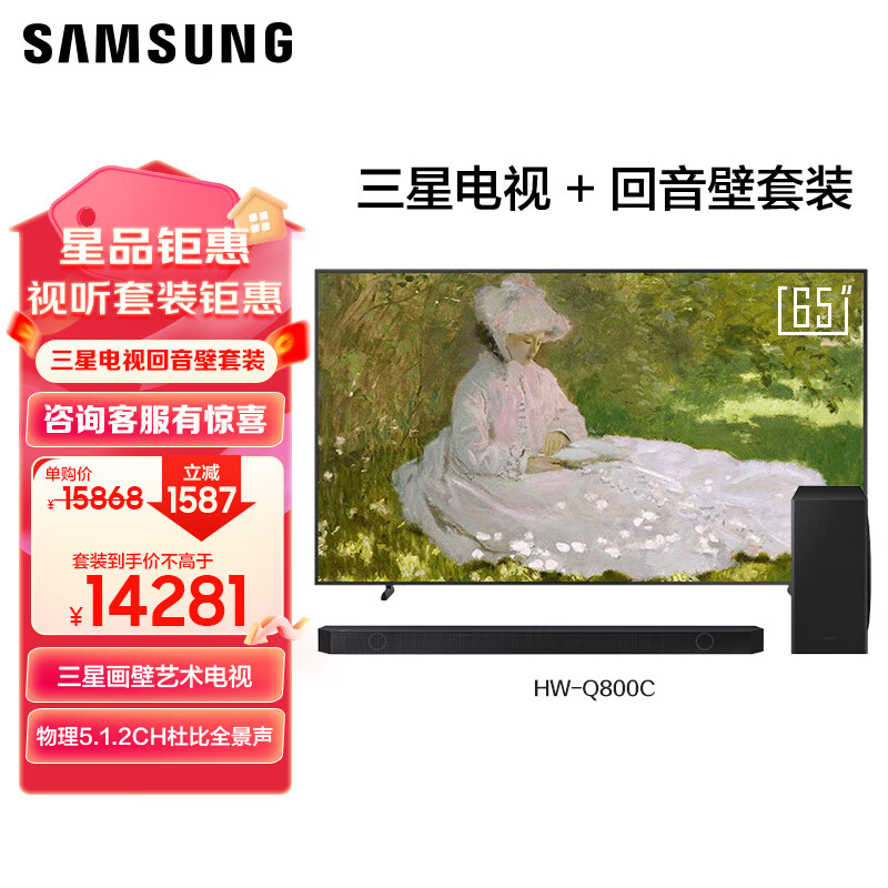 三星(SAMSUNG)65LS03C 65英寸 frame画壁艺术电视 120Hz +HW-Q800C/XZ音箱套装价格:14281.00元!