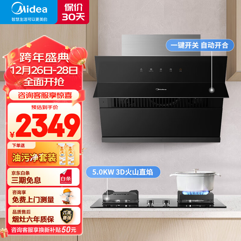 美的(Midea)烟灶套装 小尺寸抽油烟机侧吸式 家用双灶具 小户型油烟机燃气灶套装机J27+Q230A液化气价格:2349.00元!