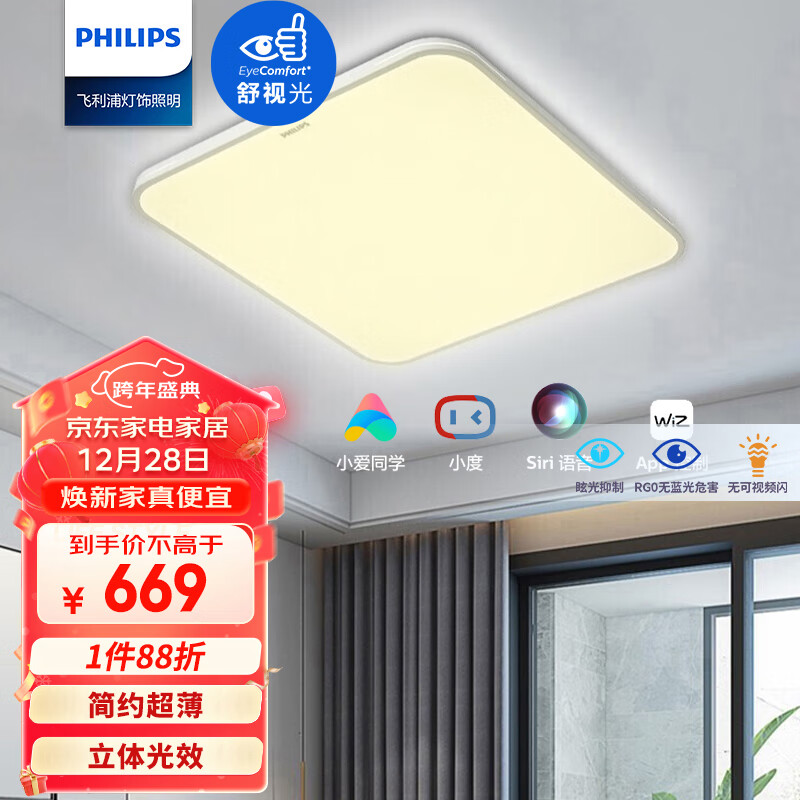 5、飞利浦吸顶灯具,品牌值得信赖,质量非常好灯光效果:舒服,不刺眼,非常满意。外观款式:外观大气,简洁,简约