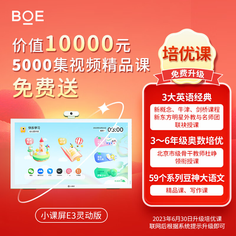 京东方BOE小课屏E3灵动版128G学生学习平板21.5英寸类纸护眼儿童学习机 小学初高中同步点读网课早教机家教机价格:3899.00元!