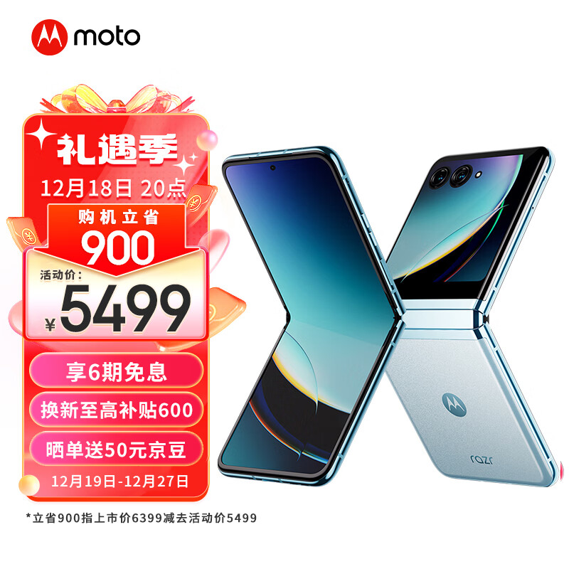 摩托罗拉 moto razr 40 Ultra 掌心巨幕 外屏海量应用 无线充电 骁龙8+ 5G折叠屏旗舰手机 12GB+512GB 冰晶蓝价格:6399.00元!