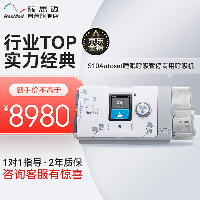瑞思迈 Resmed呼吸机家用S10 Autoset全自动睡眠医用无创原装进口持续气道正压呼吸舒缓型白色价格:8980.00元!