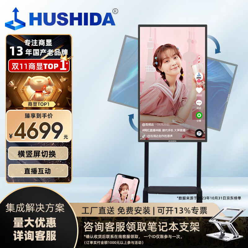 互视达(HUSHIDA)65英寸抖音快手直播大屏 主播直播间直播设备互动直播一体机 红外触摸屏显示器 BGCM-65价格:5599.00元!