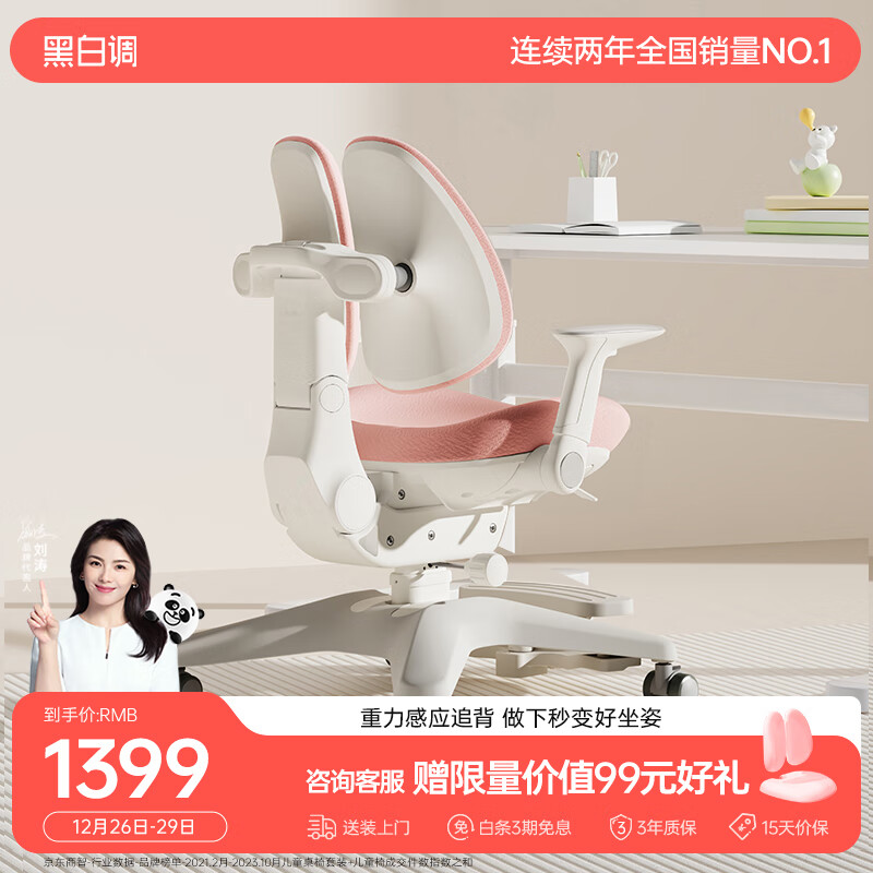 黑白调学习时光G6追背星学习椅【重力感应自动追背正姿】儿童学习椅学生椅子 粉价格:1699.00元!