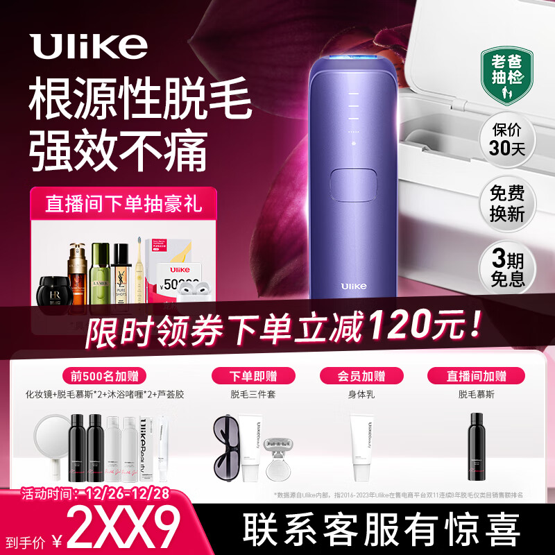 Ulike蓝宝石冰点脱毛仪Air3 水晶紫套装 激光剃毛器私处脱毛女士身体家用净毛美容仪送女友元旦礼物新年礼物价格:4599.00元!