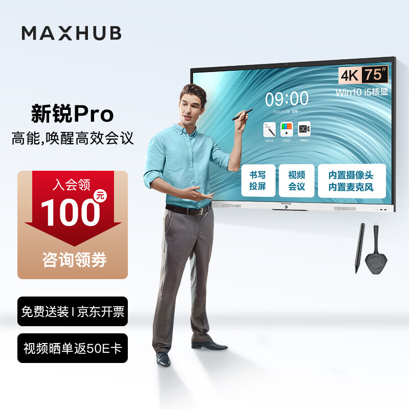 MAXHUB视频会议平板一体机教学智慧屏摄像头麦克风触摸屏电子白板解决方案新锐Pro75 Win10+无线传屏+笔价格:17629.00元!